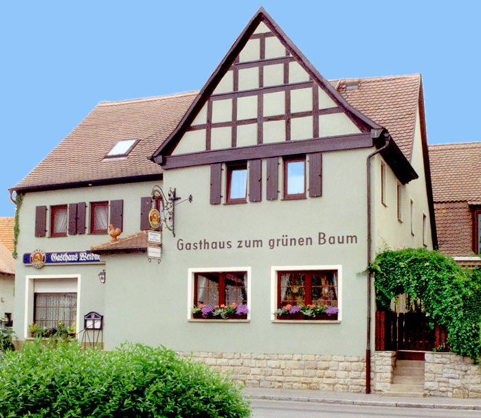 Sie verbringen Ihren Abend am liebsten in ungezwungener Atmosphäre bei einem Bier mit anderen plaudernd? Da werden Sie sich im "Grünen Baum" wohlfühlen! Das Gasthaus "Grüner Baum" liegt im Ortskern von Burgbernheim und ist seit über 50 Jahren im Besitz der Fam. Weidner. |